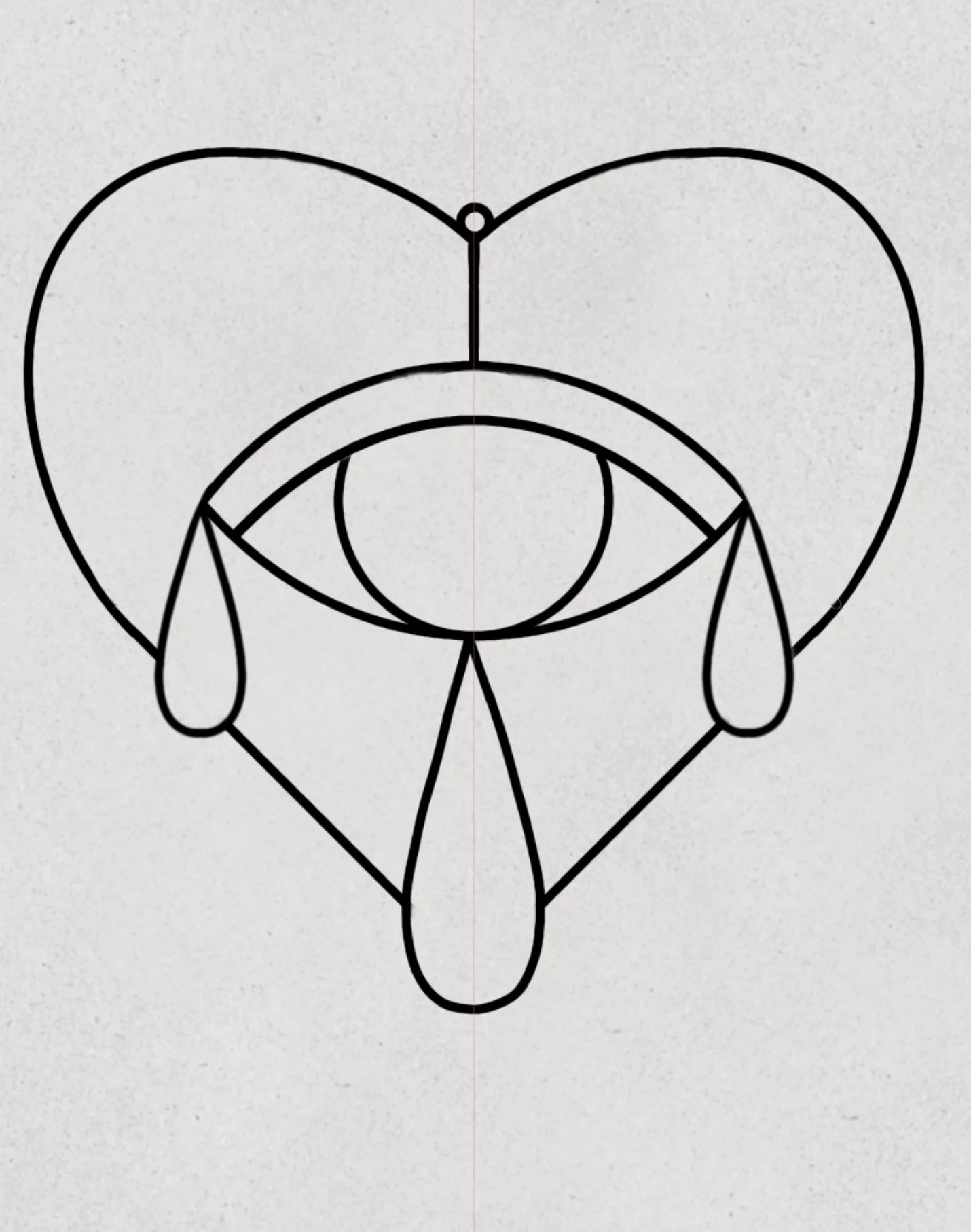Digital drawing of a heart with a large eye in the center to be used as a pattern for cutting glass.